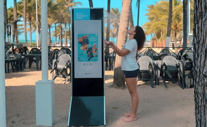 Mídia que refresca e engaja: totem interativo une alívio térmico e publicidade de alta retenção em academias, praias e arenas esportivas